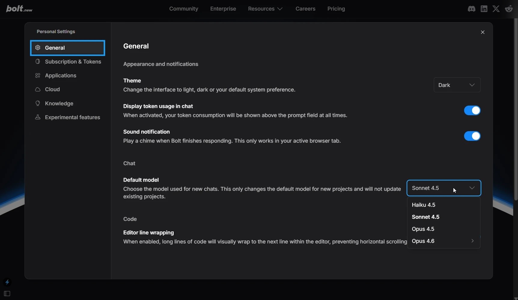Bolt now remembers your last-used model whenever you reopen a project or refresh the page, and you can set a default model across all projects in settings so you never have to reset it again.