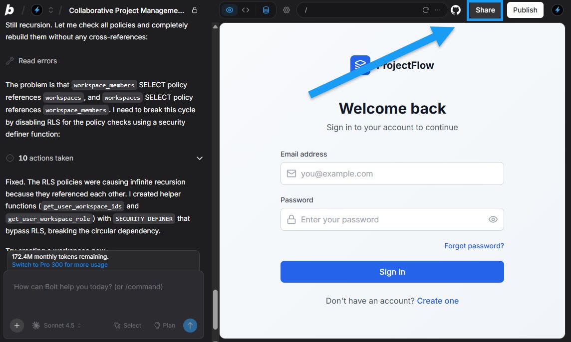 Log in to Bolt with your Teams account and open the project you want to reuse.