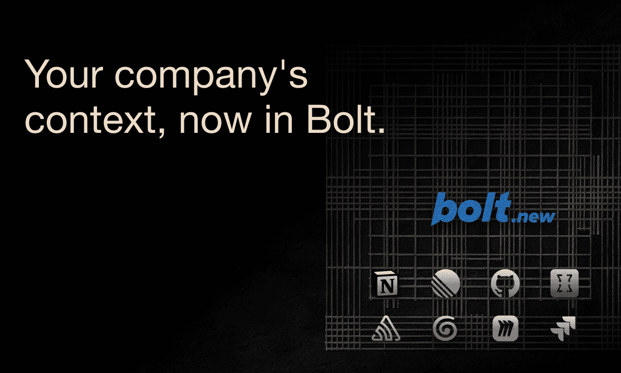Connectors are direct links between Bolt and the tools you work in. Connect Notion, and Bolt can read and edit your pages while you build. Connect Linear, and your task list becomes live context. Connect GitHub, and Bolt can read your issues and create pull requests without you describing what's in them.