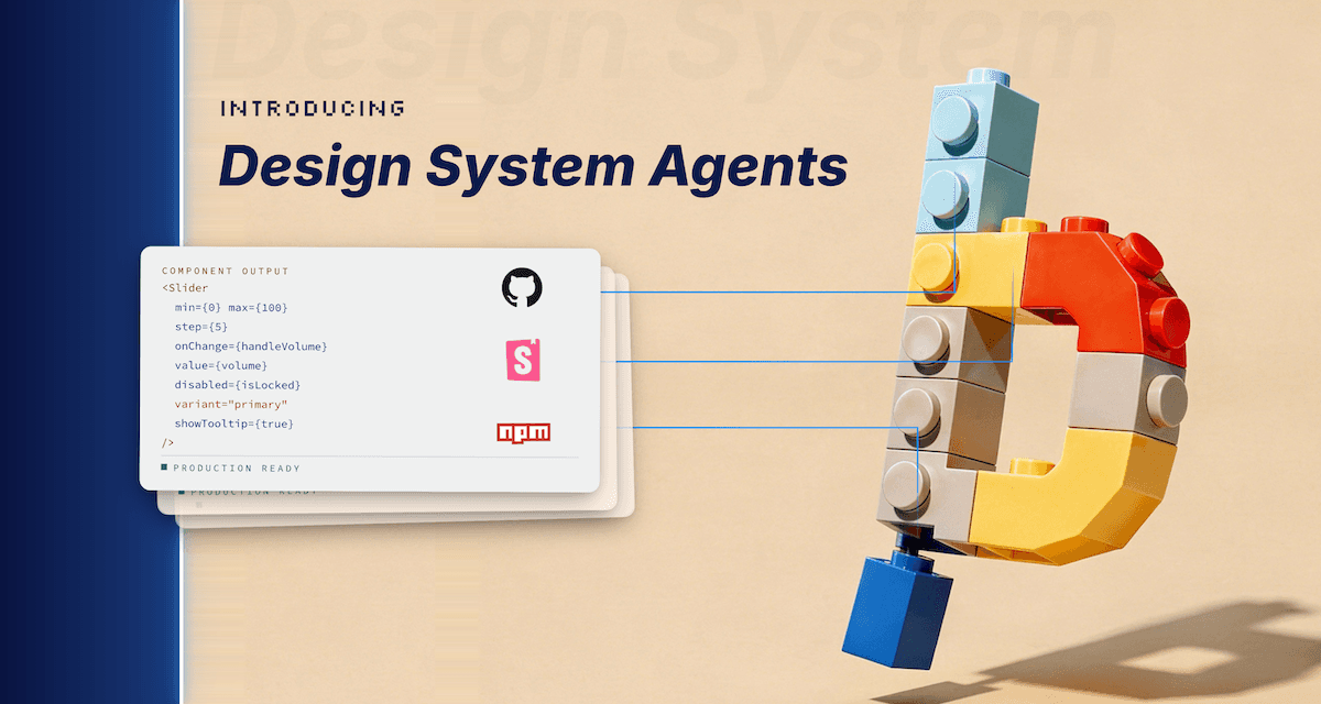 A design system is a shared library of UI components (buttons, forms, navigation elements) and design tokens (colors, typography, and spacing). It is the visual identity of your company.